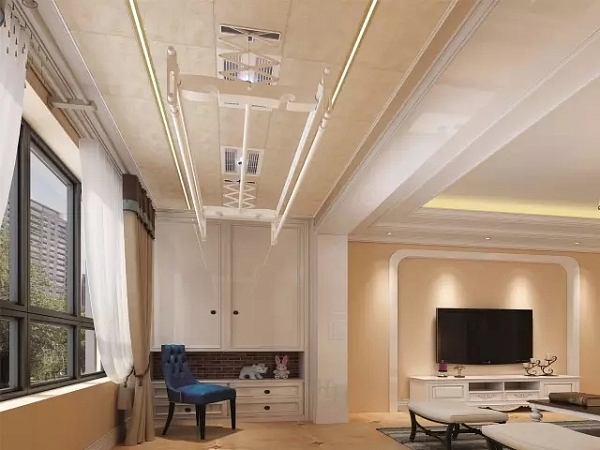 如果說,前面智愛暖空調是“干衣衛士”,那么美爾凱特智麗晾衣機簡直就是干衣界的007!這種晾衣機從設計來看就非常講究,以陽臺吊頂一體完美融合,集晾衣、風干、烘干、消毒、照明五大功能于一體。