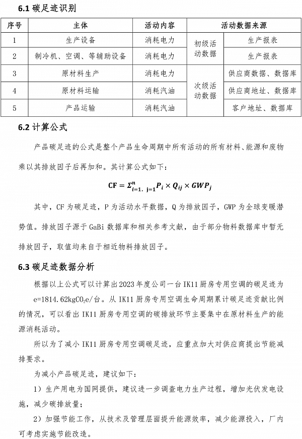 IK11 廚房專用空調(diào)碳足跡核算報(bào)告